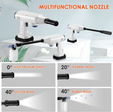 - Multiple nozzle - Our high-pressure cleaner has a multi-function nozzle, which is suitable for 0° high-pressure direct injection, washing fine seams; 20° washing body, 40° fan-shaped mode, large area cleaning and foam mode. The foam mode removes stubborn stains on the surface of the object, just add detergent to the foam bottle.