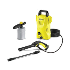 The Kärcher "K2 Basic" is ideal for cleaning Cars, bicycles, garden tools or garden furniture and for normal dirt around the home. This high-pressure cleaner is intended for occasional use. Features include a trigger gun, 3 m high-pressure hose, Jet lance and a water filter which protects the pump against the ingress of dirt particles.