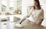 The easy and intuitive to use SC 2 EasyFix entry-level steam cleaner provides two-step steam regulation for adapting the steam intensity to the surface and level of dirt. Practical accessory storage on the device as well as a parking position for the floor nozzle are useful details for even more convenient steam cleaning. The EasyFix floor nozzle with flexible joint guarantees excellent ergonomics and, thanks to the lamella technology, ensures perfect cleaning results. Thanks to the convenient hook-and-loop system, the microfibre floor cloth can be quickly and easily attached to the floor nozzle and removed again without having to come into contact with dirt. The SC 2 EasyFix Kärcher steam cleaner cleans entirely without chemicals and can be used anywhere. Thorough cleaning with the Kärcher steam cleaner removes 99.999% of coronaviruses* and 99.99% of all common household bacteria** from typical household hard surfaces. When the various accessories are used as intended, tiles, hobs, exhaust hoods and even the smallest gaps are hygienically cleaned. Even stubborn dirt is reliably removed.