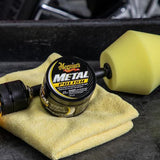 - Apply a small amount of Meguiar's Metal Polish onto the surface with a clean, 100% cotton terry cloth towel or a foam applicator like Meguiar's Soft Foam Applicator Pads.