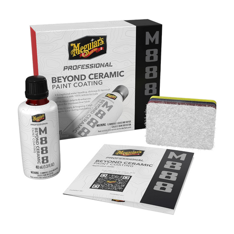 Meguiar's Beyond Ceramic Paint Coating M888 is an exciting professional coating that utilizes proprietary chemistry built on prior technology that we've continued to improve upon. M888 is a multi-year paint protection(1) that delivers excellent durability and chemical resistance wrapped up in one amazing car ceramic coating that's extremely user-friendly. With M888, you get a professional long-lasting coating but don't have to worry about being a certified or a trained installer to apply; anyone can purchase and use Beyond Ceramic Paint Coating. The advanced formula allows for an easy application with a low risk of high spotting, a single coat application, and easy wipe-off. To help ensure you obtain the best results possible, we've also included a pro application guide in the kit with a QR code where you can get the SOP, videos, and SDS. This ceramic car coating is different than our traditional SiO2 ceramic-based products, delivering even better durability, water-beading, slickness, and gloss with 100% actives, which means no flashing-off carriers like other coatings and traditional waxes.