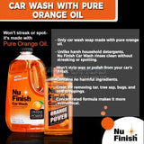 - Unlike harsh household detergents, Nu Finish Car Wash rinses clean without streaking or spotting.