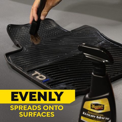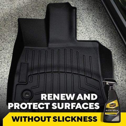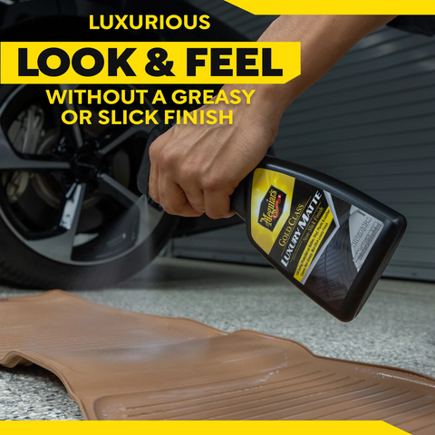 Over time, automotive interior rubber, vinyl, plastic, and leather can begin to fade, dry, and become weathered. Exposure to the elements only accelerates this process, making it essential to preserve these surfaces with a quality interior detailing product. The problem is that many of these products offer protection but then leave surfaces slippery, glossy, and with unwanted slickness. Meguiar’s Gold Class Luxury Matte Non-Slick is the perfect solution. Just spray on and wipe off to quickly add UV-fading protection to rubber, vinyl, plastic, and leather surfaces inside your car. This advanced interior protectant leaves interiors looking rich and clean. There is no grease or slickness left behind, just a luxurious, refreshed look and feel. It works perfectly on unpainted surfaces such as dashboards, arm rests, door pulls, vinyl seats, plastic trim, parking brake handles, leather seats, and more. For surfaces where gloss and slickness aren’t desirable, Gold Class Luxury Matte provides UV-fading protection.